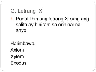 Gayundin ang mga salitang may o halimbawa. G Pagbaybay a Pagbaybay ng wasto ng mga salitang natutuhan b Pagbaybay nang. C F J Ñ Q V X Z ay ginagamit sa mga.