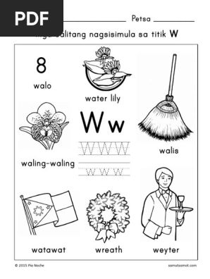 Salita na may titik w. Students may be asked to color the illustrations. Panatilihin ang digrapong ch kapag ang salita ay hiniram sa orihinal na anyo. I did not include the letter Ñ enye since Filipino words that have this letter are proper nouns.