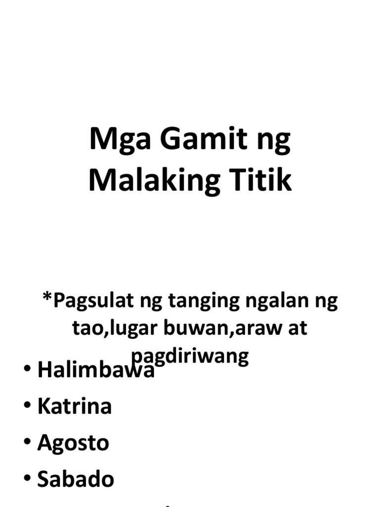 Pag Gamit Ng Malaking Titik Gamit Ng Malaking Titik scribd com April 9th 2019 - PAG IBA PANG SALITANG GINAGAMITAN NG MALAKING TITIK Halimbawa Tamang Paggamit ng Malaking Titik 10 Halimbawa Nagpapahayag tayo ng mga kaisipan at saloobin sa mga taong nakakasalamuha natin sa bawat araw at nagagawa natin ito sa pamamagitan ng tinatawag nating WIKA Pilipino. The Wonders of the World. Batayang kalaaman sa retorika wastong.